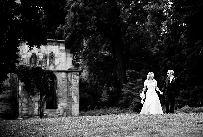 Nach der standesamtlichen Trauung auf Schloss Ettersburg fuhren wir mit einem Rolls-Royce zum Dorint Hotels Weimar, wo die anschließende Hochzeitsfeier stattfand. Zum Portraitshooting war der angrenzende Goethepark natürlich wie geschaffen.