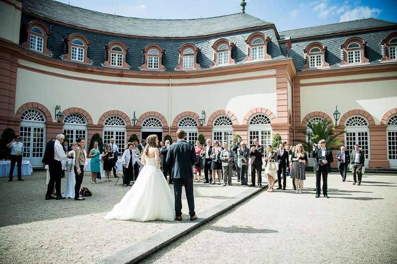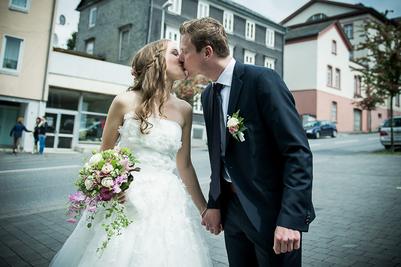 Die Hochzeitsreportage im hessischen Weilburg begann schon am frühen Morgen im „Hairdesign by Igor“ unterhalb vom Schloss. Danach ging es, im engsten Kreis der Familie, zur standesamtlichen Trauung ins Rathaus von Weilburg. Im Cafè „Altes Rathaus“ gab es dann einen kleinen Sektempfang. Während dieser Zeit bin ich, für ein kleines Portrait-Shooting, mit mehreren der anwesenden Pärchen in den schönen Schlossgarten verschwunden.